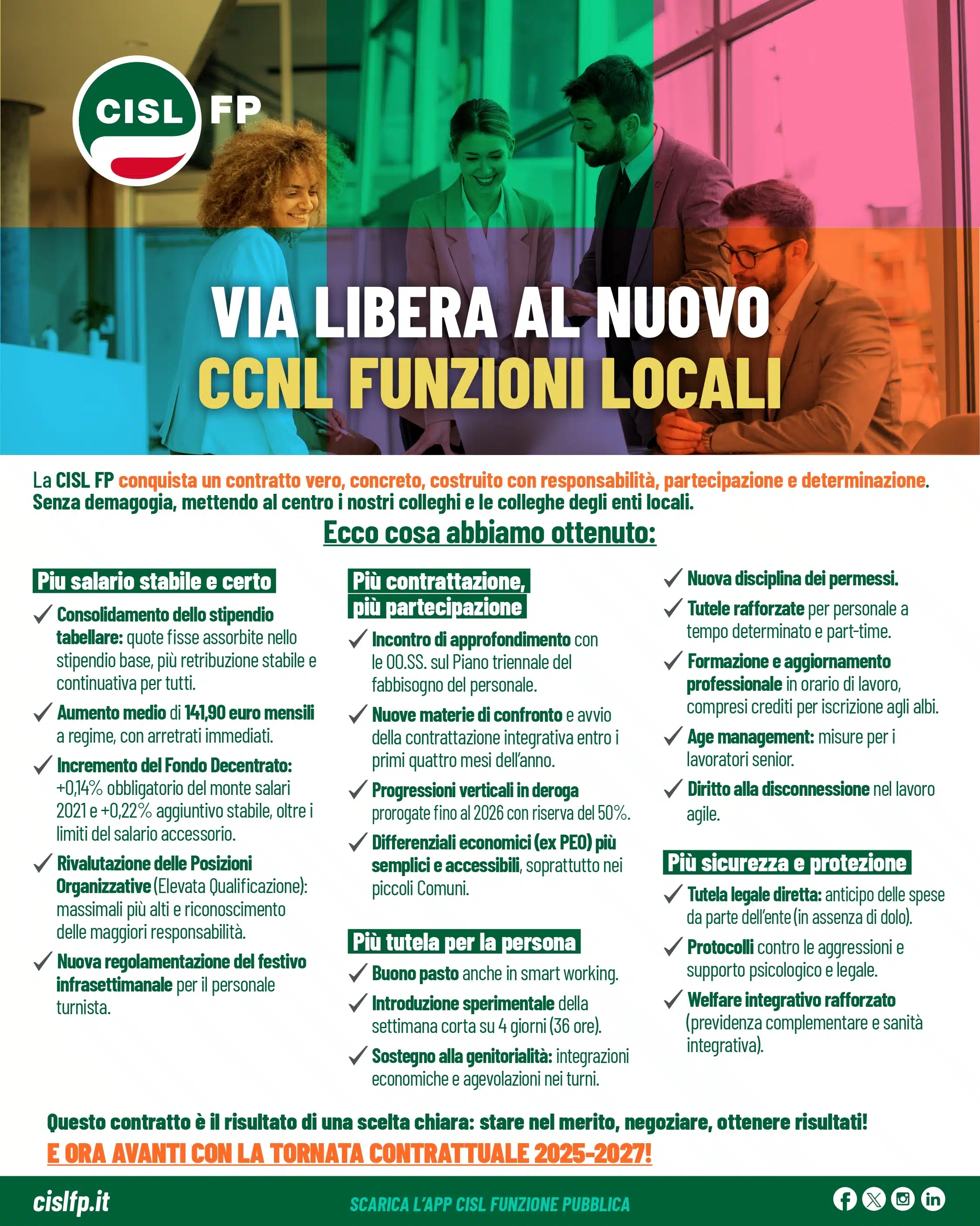 CCNL Funzioni Locali – manca solo il “via libera” della Corte dei Conti per il rinnovo